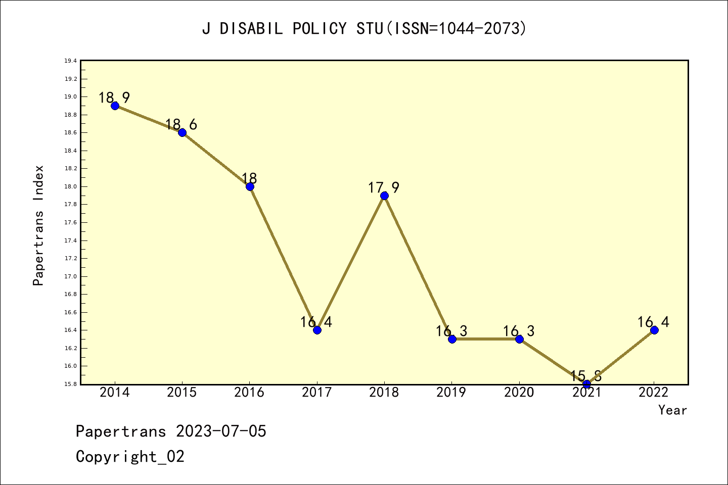 SSCI期刊Journal of Disability Policy Studies历年派博系数(Pindex)