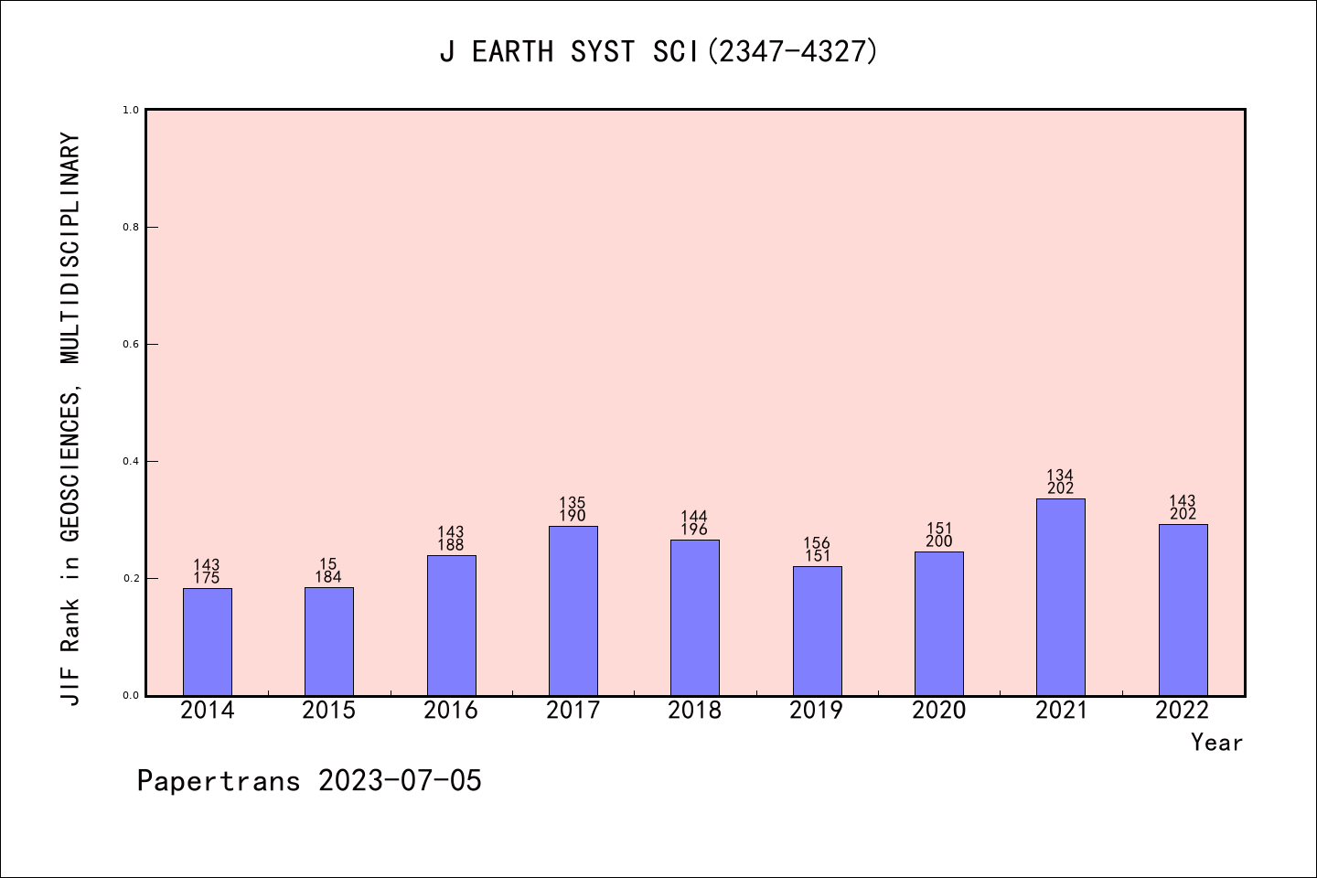 SCIE期刊Journal of Earth System Science历年派博系数(Pindex)