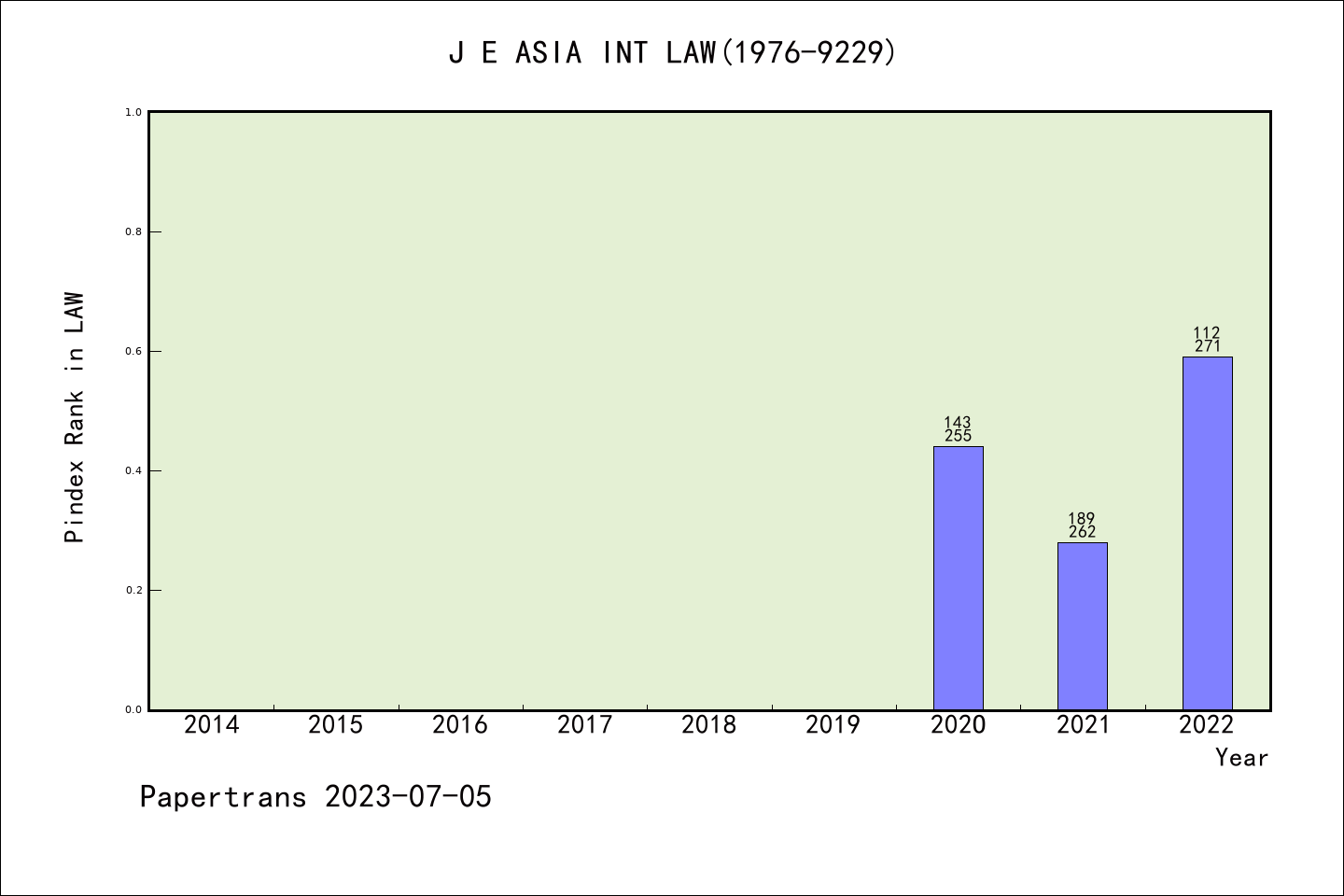 Journal of East Asia and International Law派博系数(Pindex)学科排名@ESCI法律