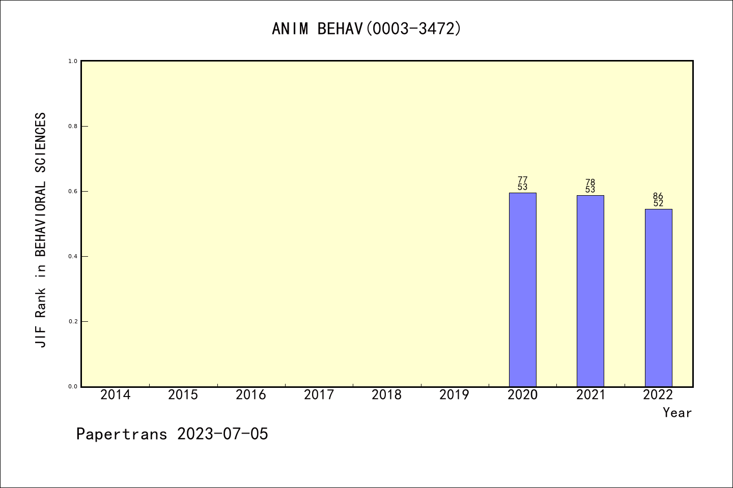 ANIMAL BEHAVIOUR拒稿率学科排名@SCIE行为科学