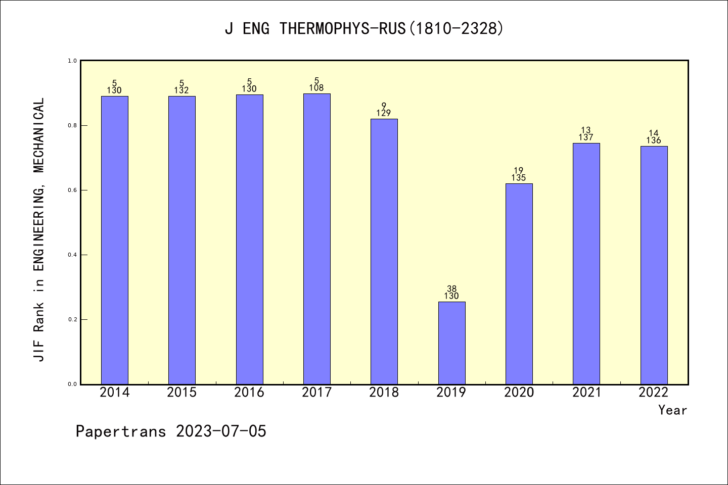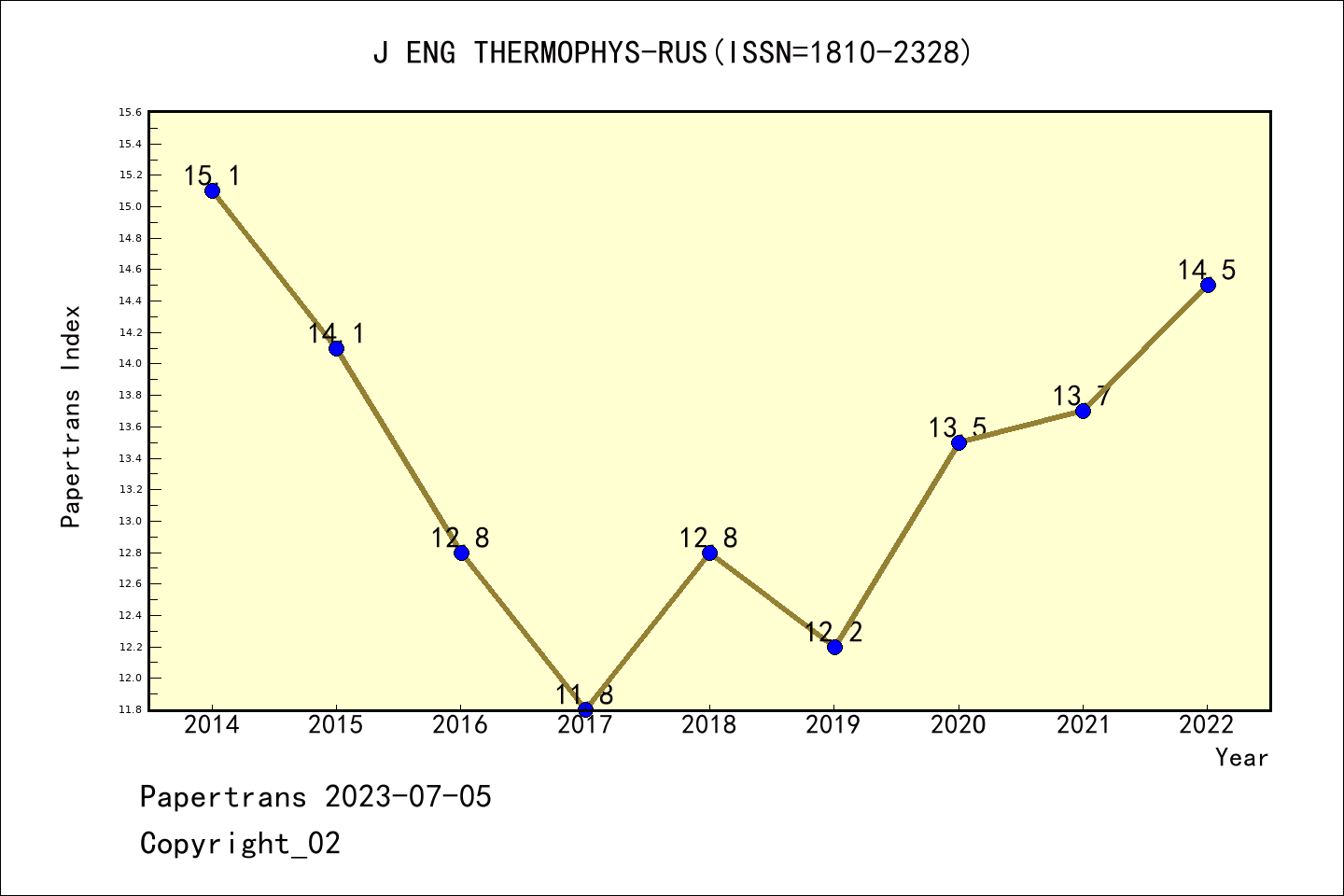 SCIE期刊Journal of Engineering Thermophysics历年派博系数(Pindex)
