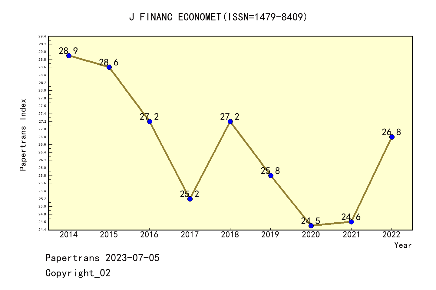 SSCI期刊Journal of Financial Econometrics历年派博系数(Pindex)