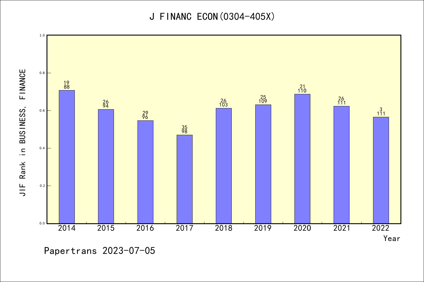 SSCI期刊JOURNAL OF FINANCIAL ECONOMICS历年派博系数(Pindex)