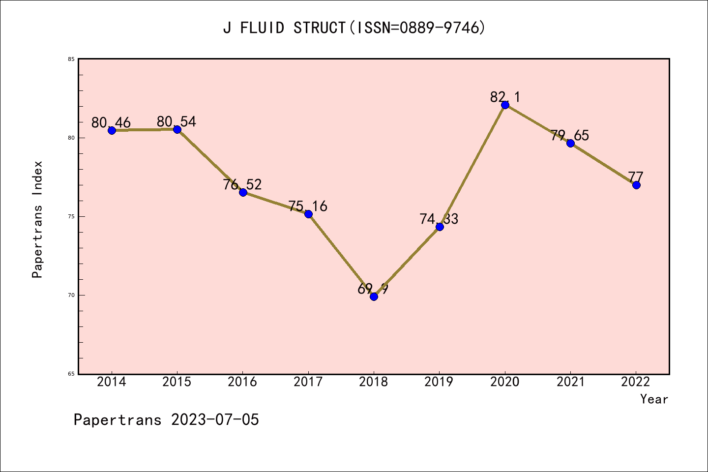 SCIE期刊JOURNAL OF FLUIDS AND STRUCTURES历年派博系数(Pindex)