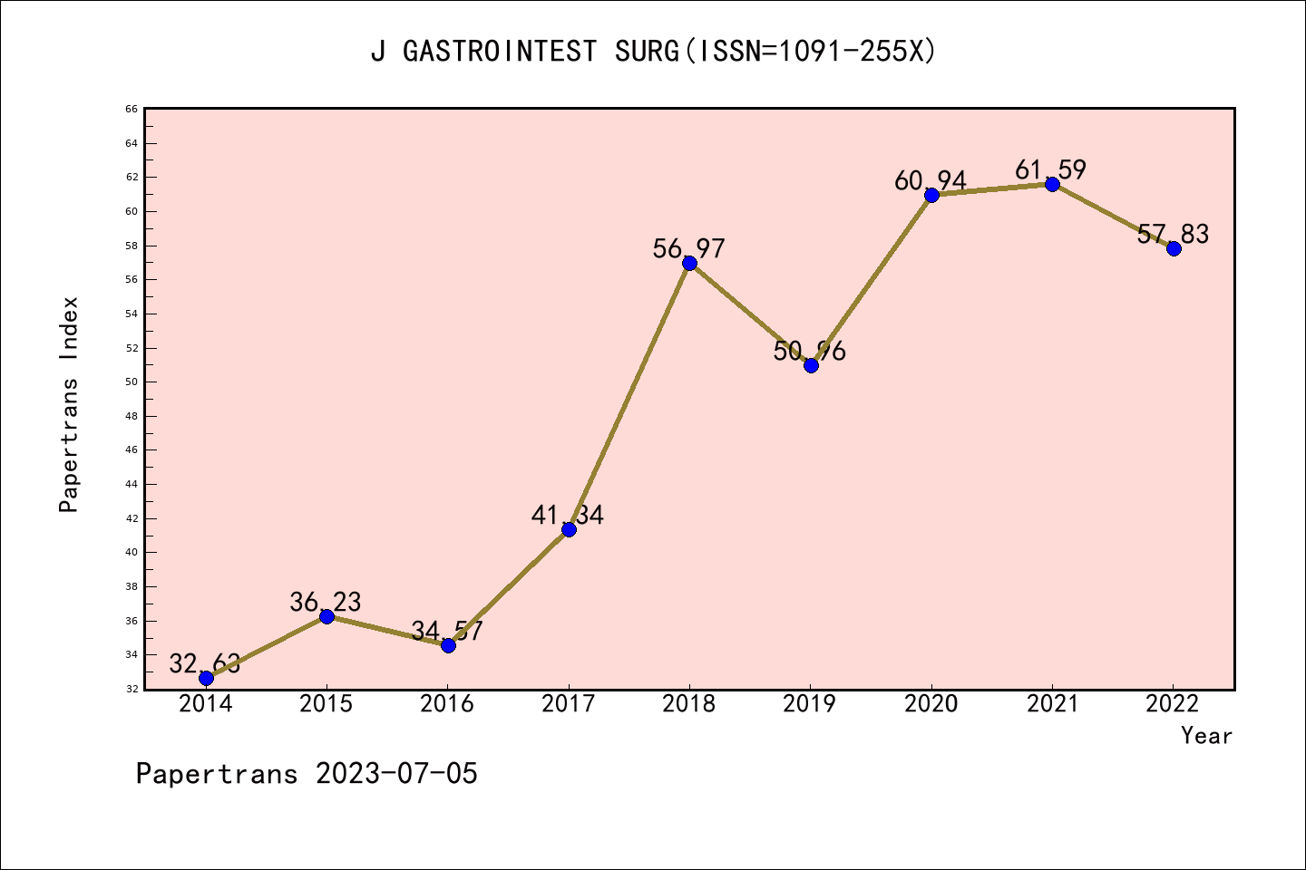 SCIE期刊JOURNAL OF GASTROINTESTINAL SURGERY历年派博系数(Pindex)
