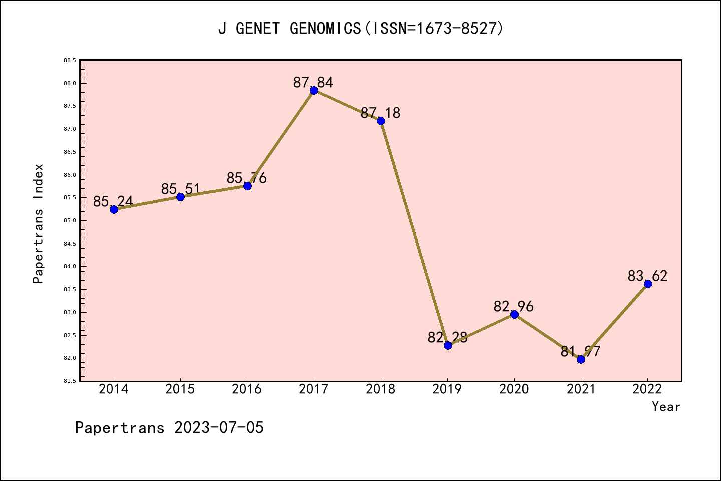 SCIE期刊Journal of Genetics and Genomics历年派博系数(Pindex)