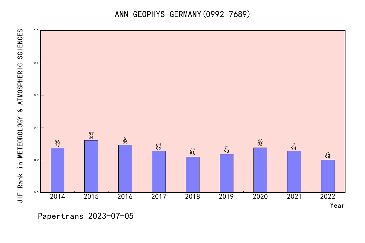 ANNALES GEOPHYSICAE拒稿率学科排名@SCIE气象学与大气科学
