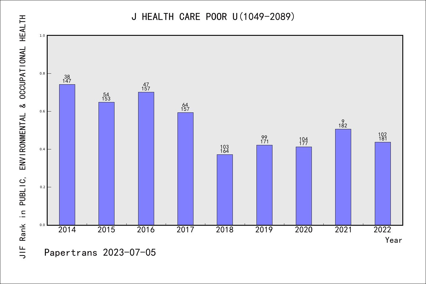 J HEALTH CARE POOR U图表质量排名@SSCI公共、环境和职业健康