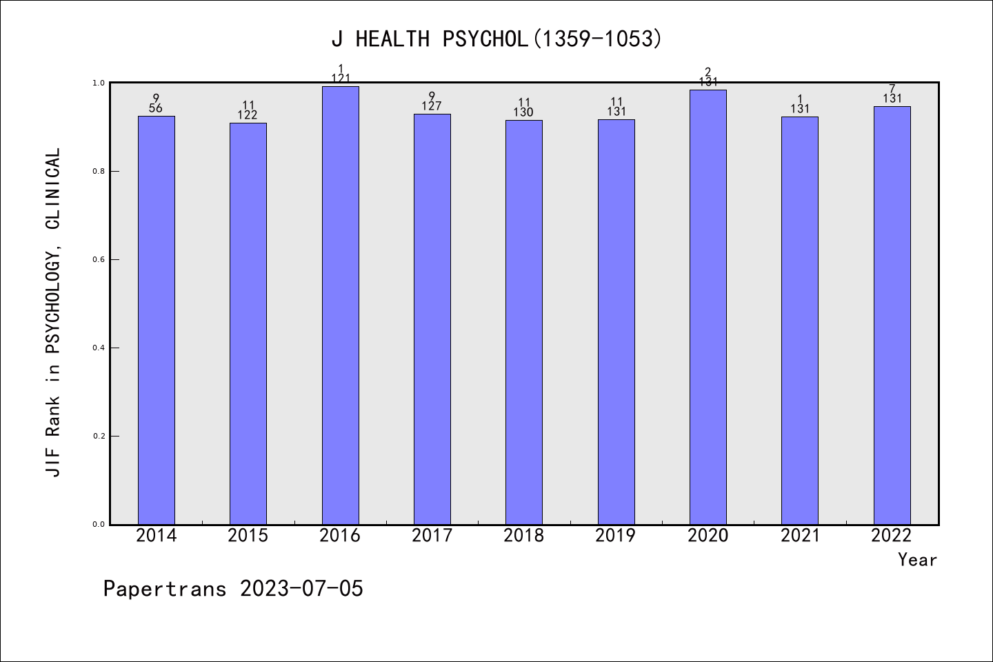 SSCI期刊JOURNAL OF HEALTH PSYCHOLOGY历年派博系数(Pindex)