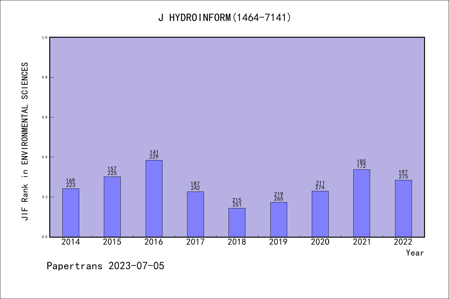 SCIE期刊JOURNAL OF HYDROINFORMATICS历年派博系数(Pindex)