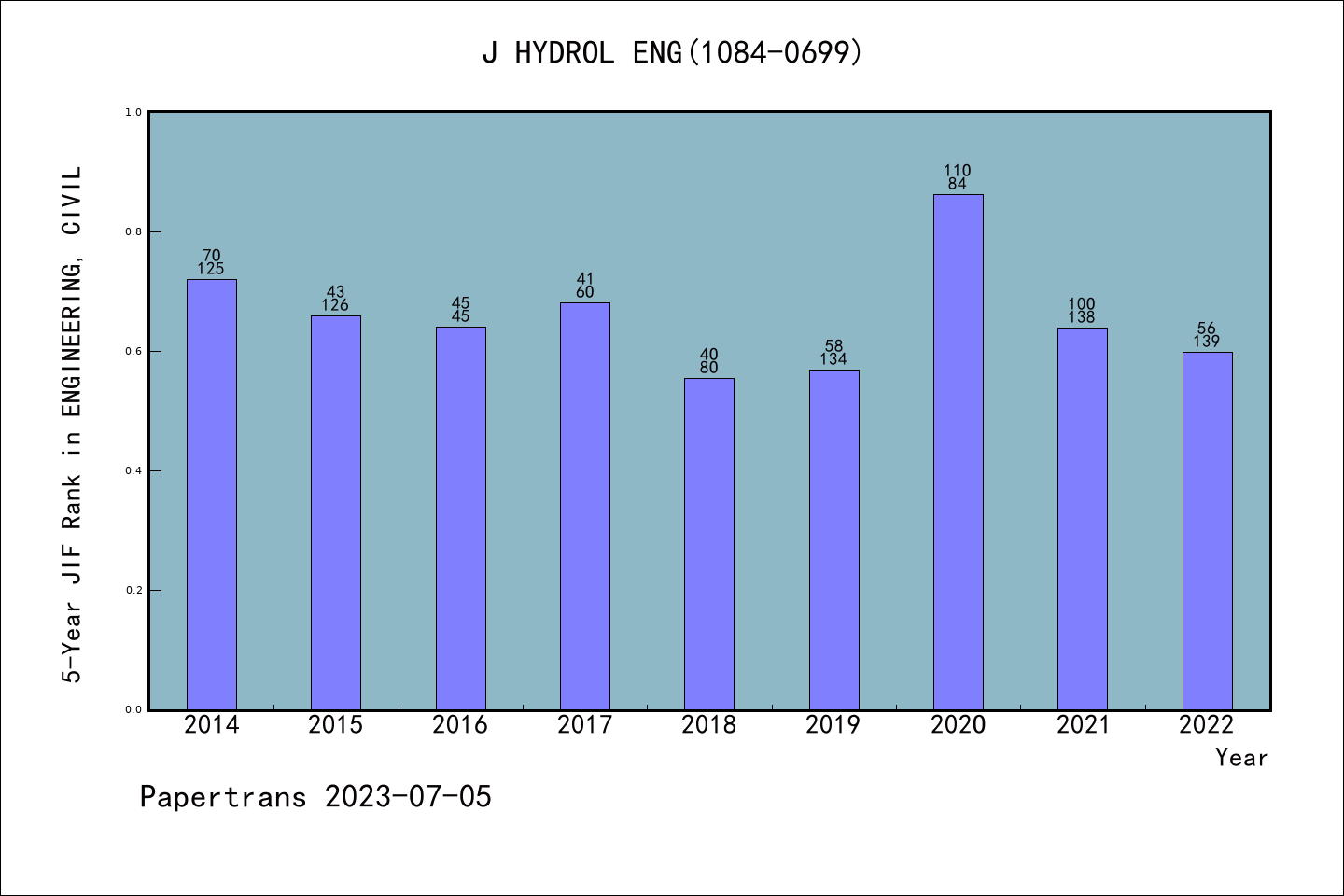 SCIE期刊JOURNAL OF HYDROLOGIC ENGINEERING历年派博系数(Pindex)