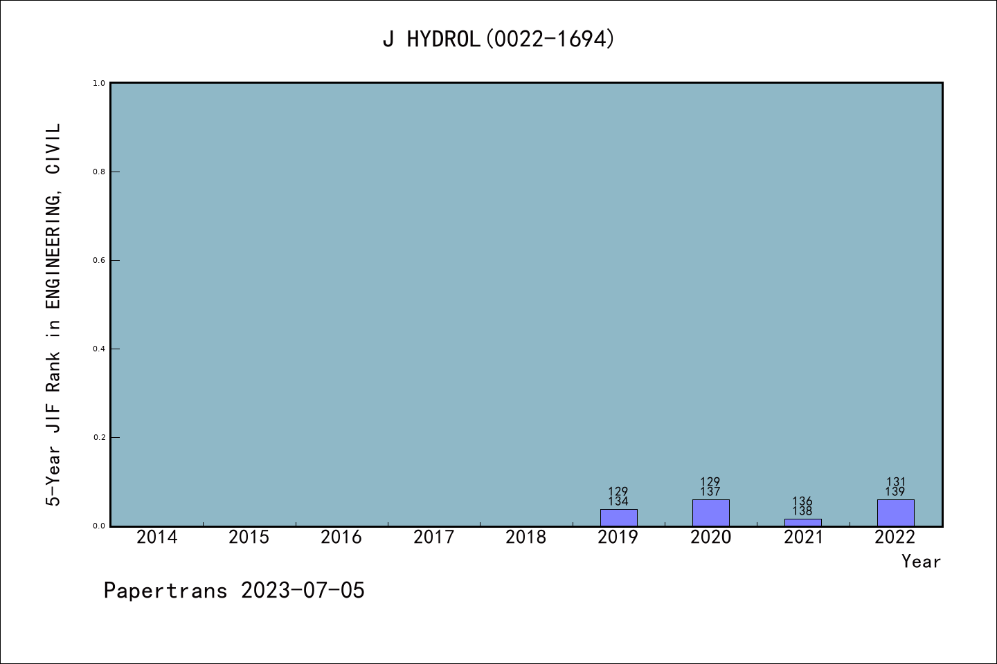 SCIE期刊Journal of Hydrology历年派博系数(Pindex)