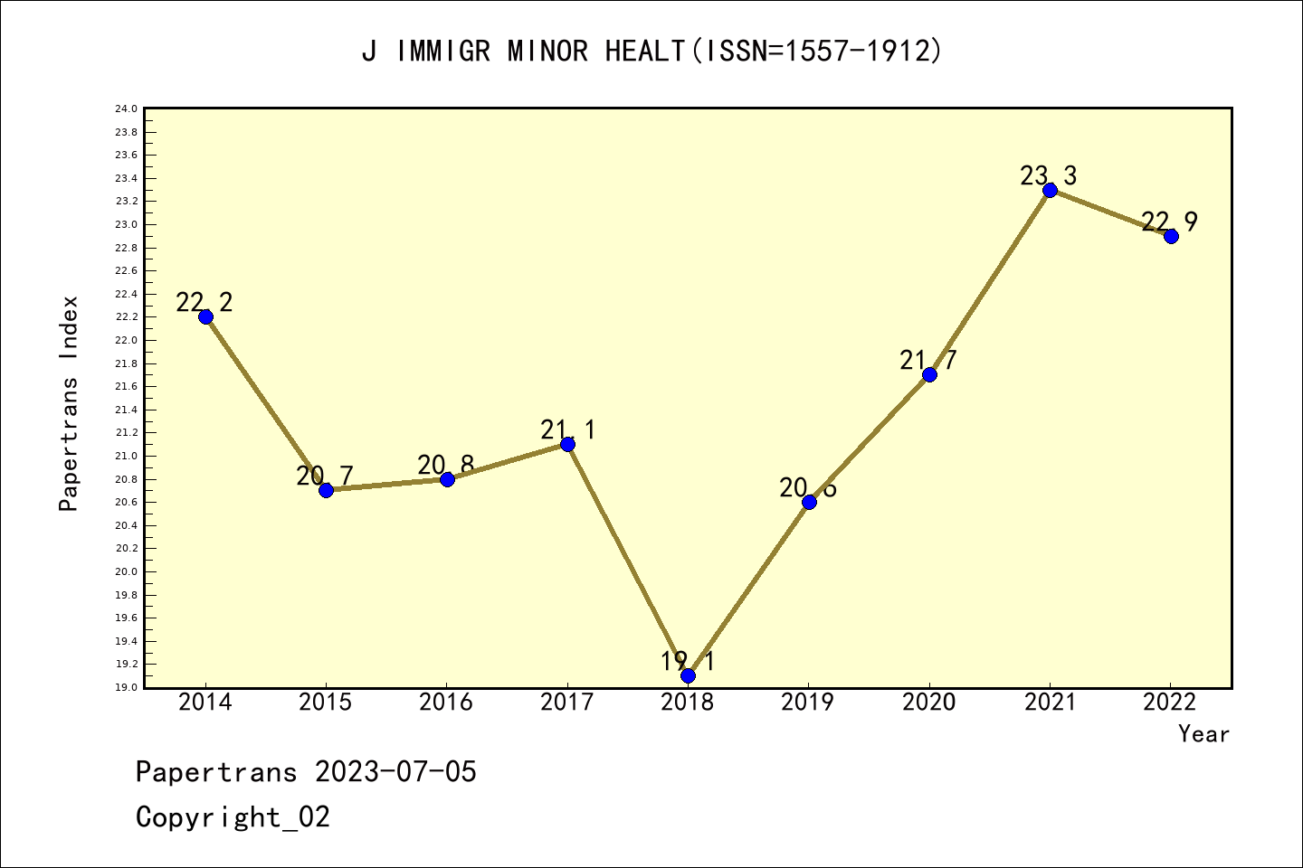SSCI期刊Journal of Immigrant and Minority Health历年派博系数(Pindex)