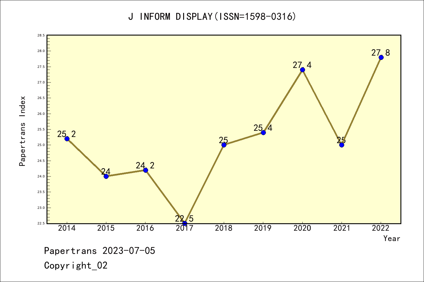 SCIE期刊Journal of Information Display历年派博系数(Pindex)