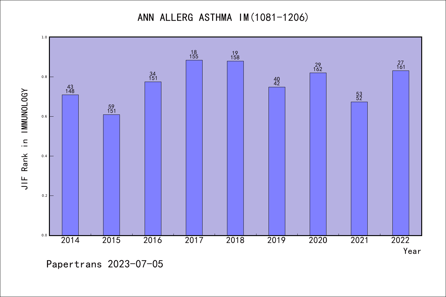 SCIE期刊ANNALS OF ALLERGY ASTHMA & IMMUNOLOGY历年派博系数(Pindex)