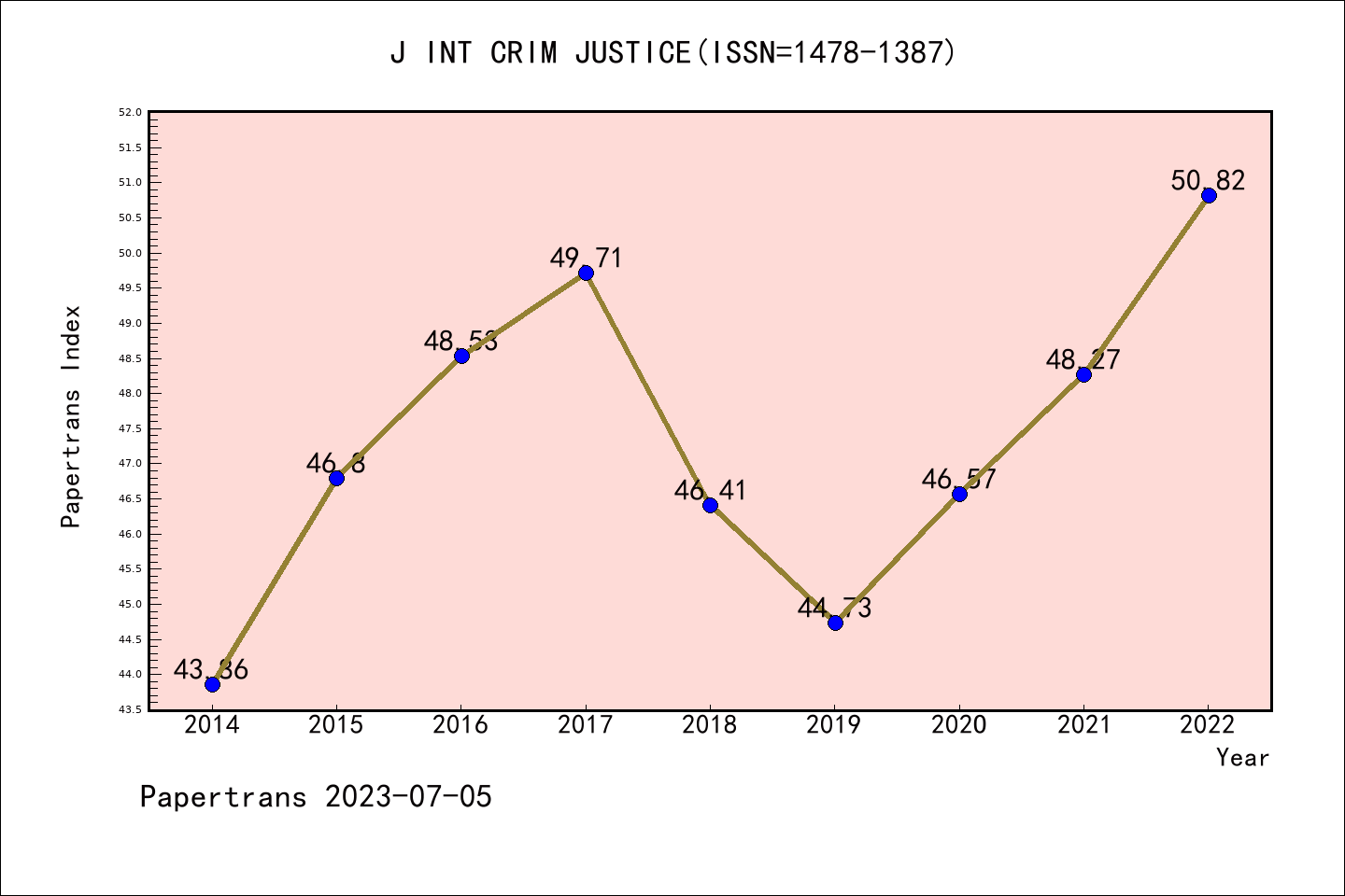 SSCI期刊Journal of International Criminal Justice历年派博系数(Pindex)