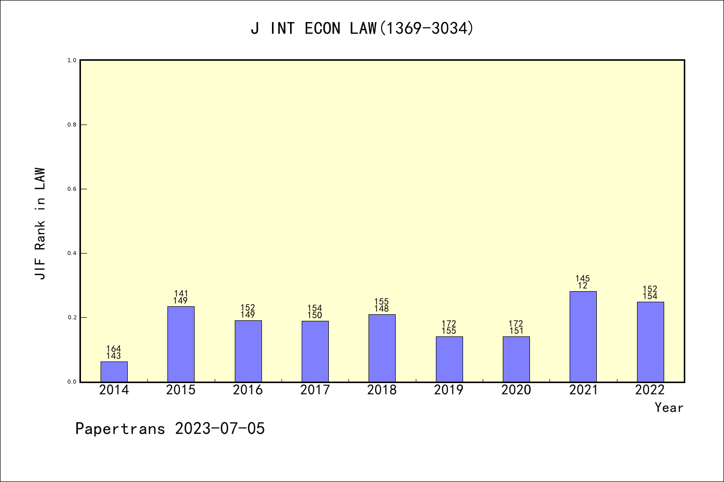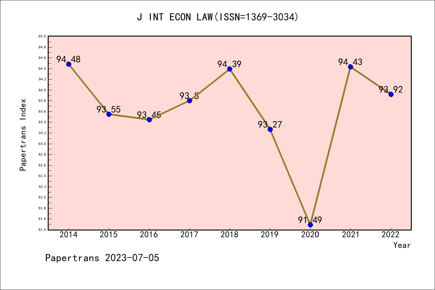 SSCI期刊JOURNAL OF INTERNATIONAL ECONOMIC LAW历年派博系数(Pindex)