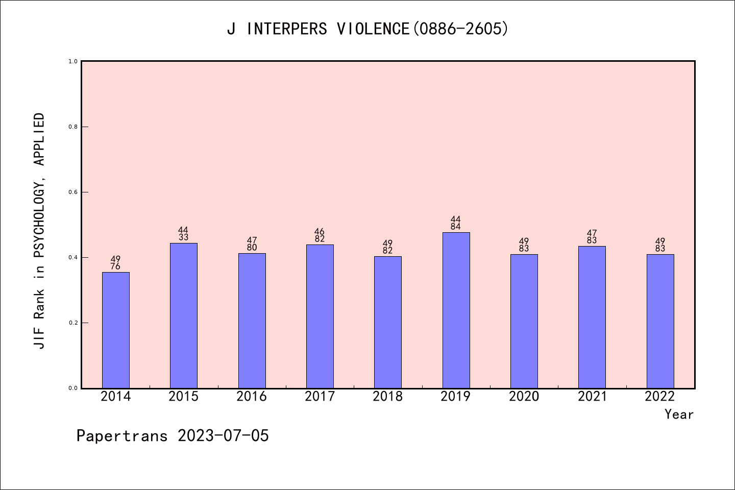 SSCI期刊JOURNAL OF INTERPERSONAL VIOLENCE历年派博系数(Pindex)