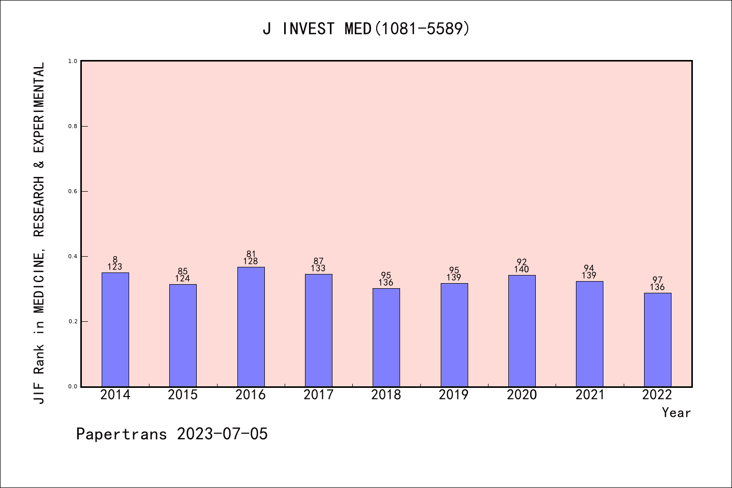 JOURNAL OF INVESTIGATIVE MEDICINE拒稿率学科排名@SCIE医学研究与实验