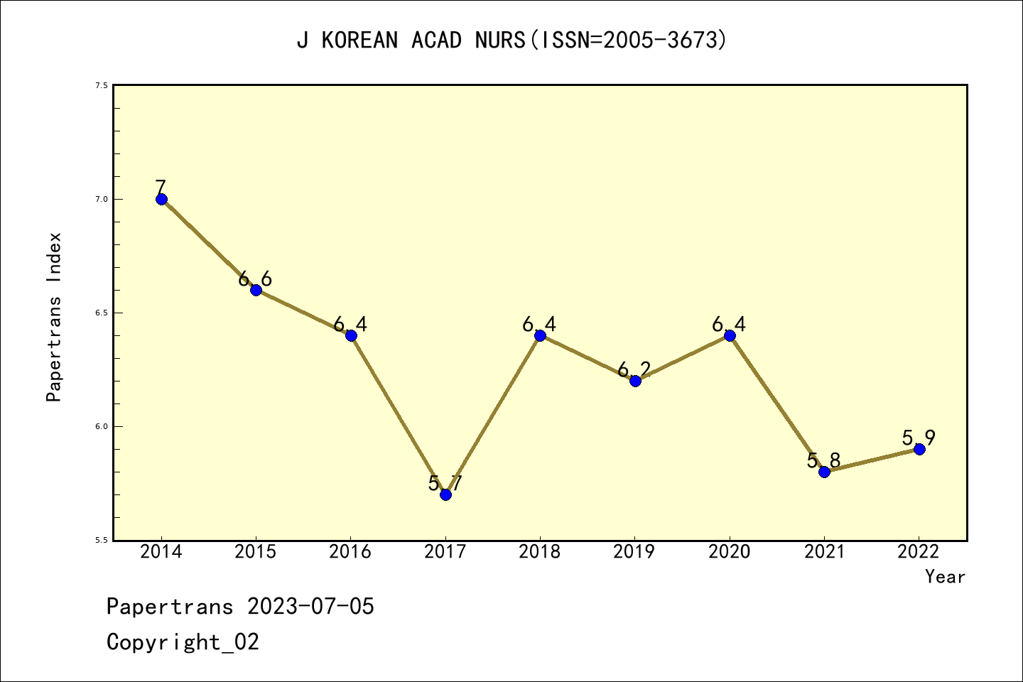 SSCI期刊Journal of Korean Academy of Nursing历年派博系数(Pindex)