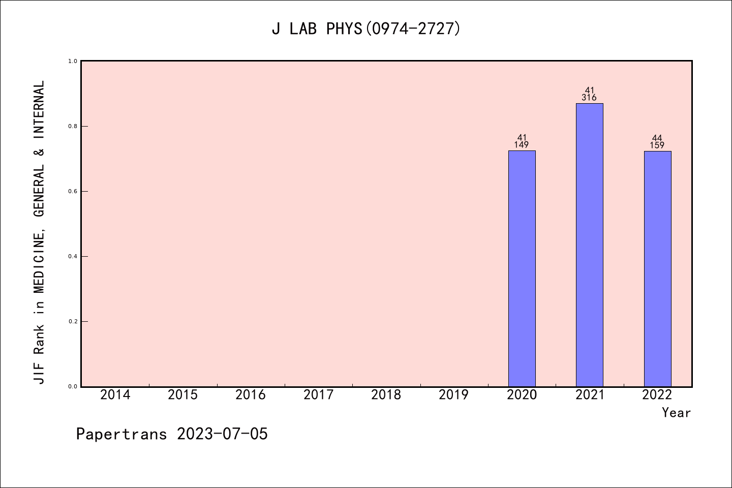 ESCI期刊Journal of Laboratory Physicians历年派博系数(Pindex)