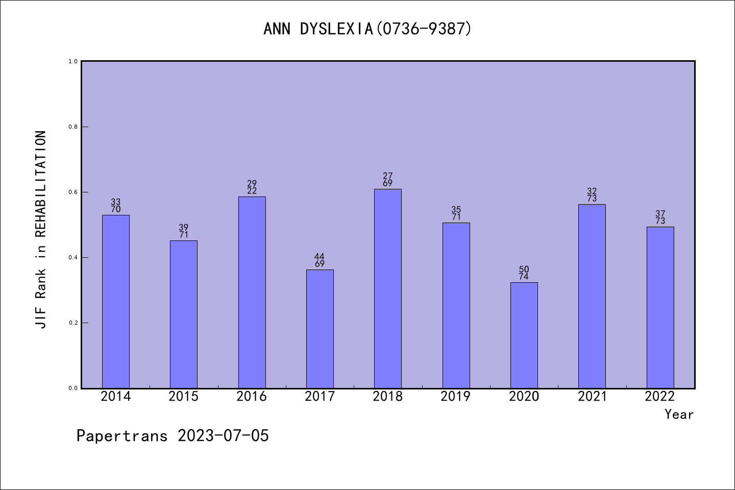 ANNALS OF DYSLEXIA拒稿率学科排名@SSCI康复