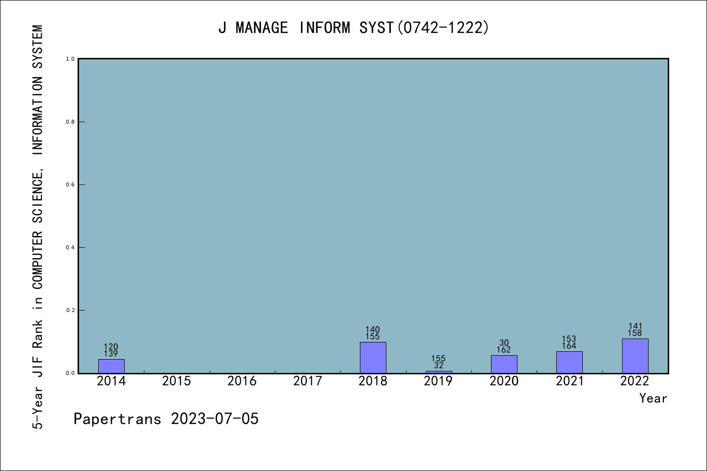 SCIE期刊JOURNAL OF MANAGEMENT INFORMATION SYSTEMS历年派博系数(Pindex)