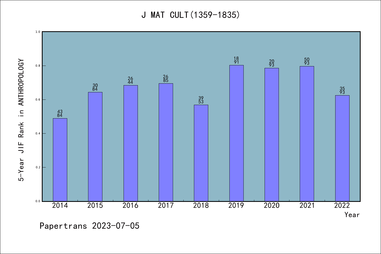 JOURNAL OF MATERIAL CULTURE派博系数(Pindex)学科排名@SSCI人类学