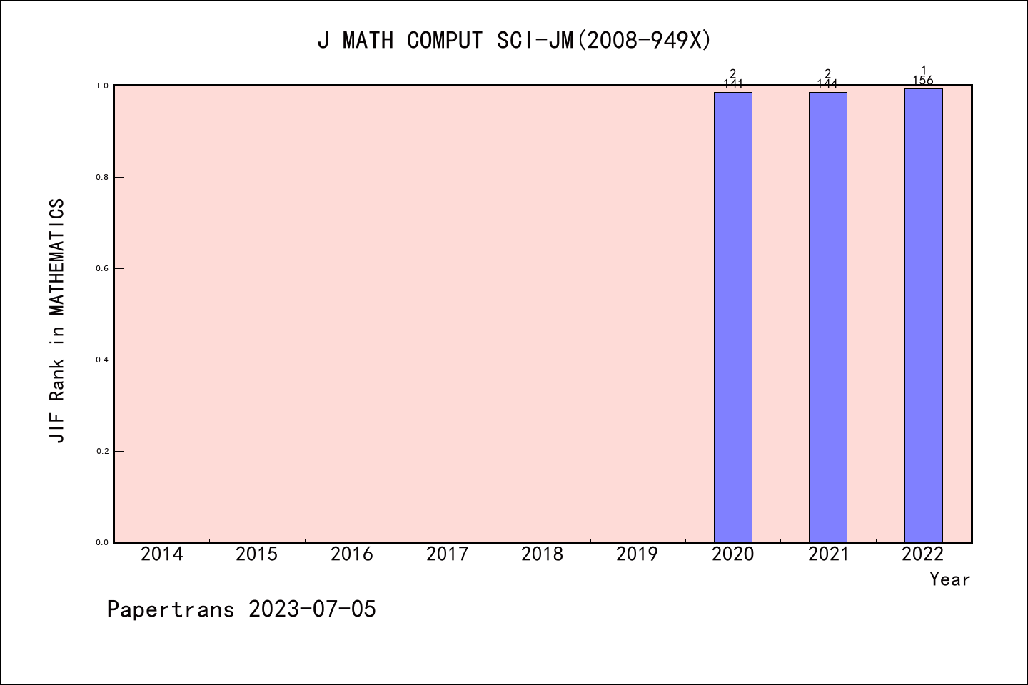 Journal of Mathematics and Computer Science-JMCS派博系数(Pindex)学科排名@ESCI数学