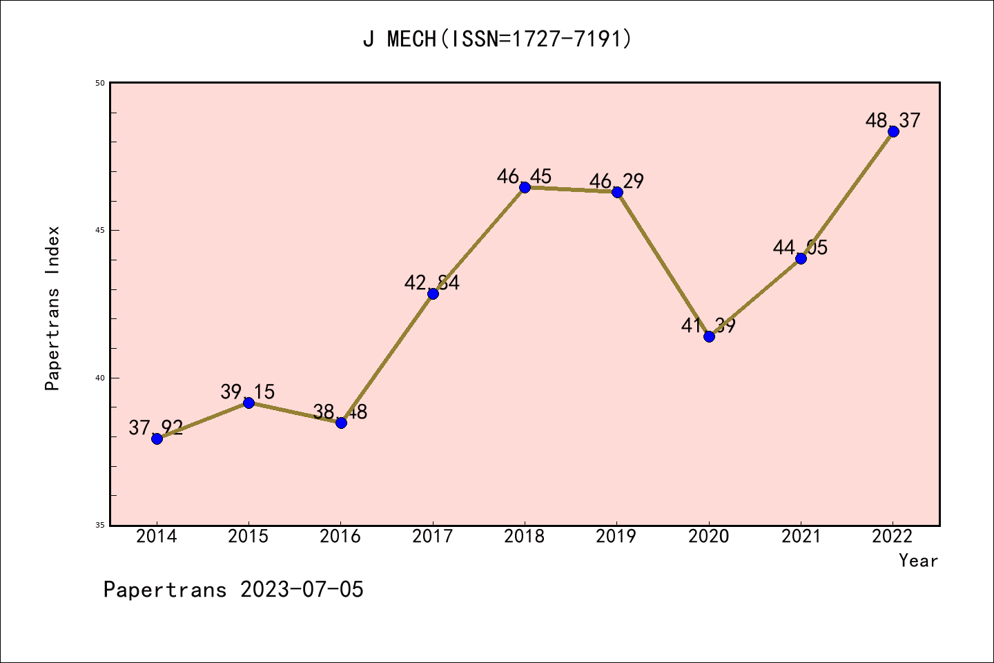 SCIE期刊JOURNAL OF MECHANICS历年派博系数(Pindex)