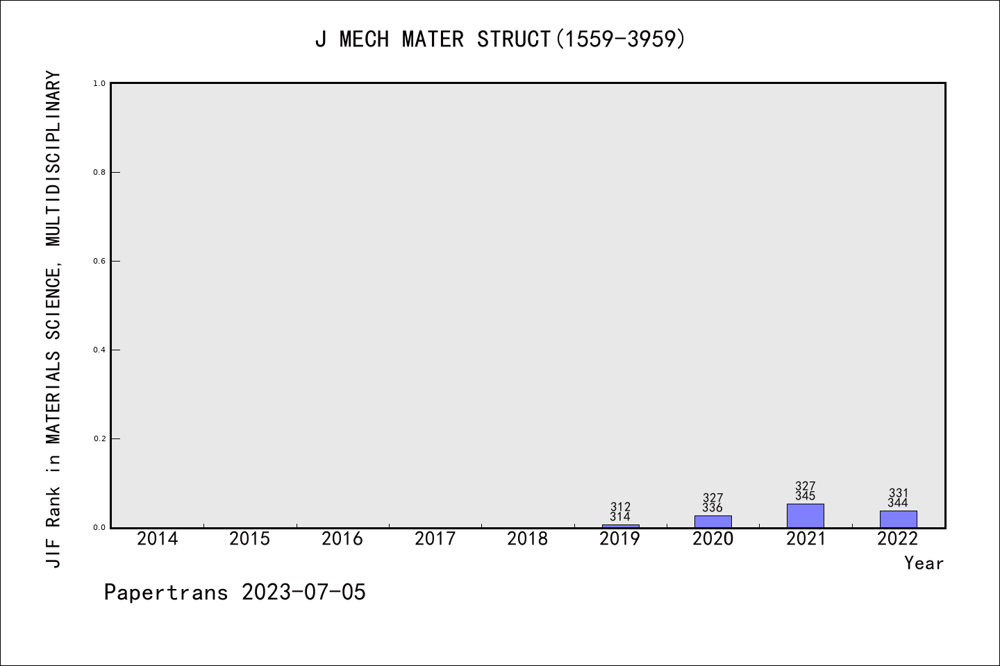 SCIE期刊Journal of Mechanics of Materials and Structures历年派博系数(Pindex)