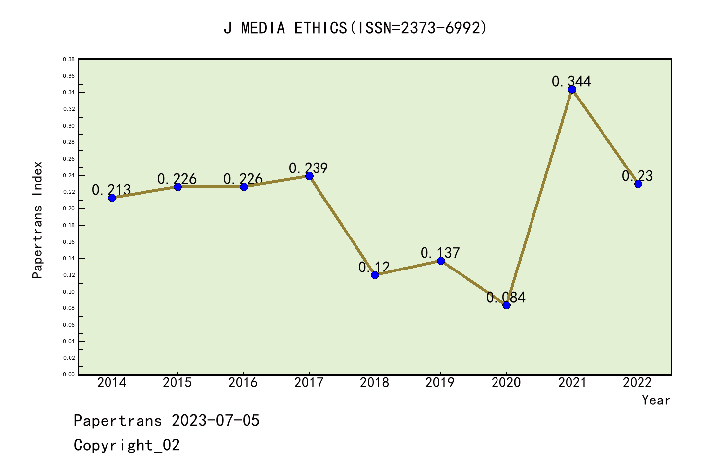 SSCI期刊Journal of Media Ethics历年派博系数(Pindex)