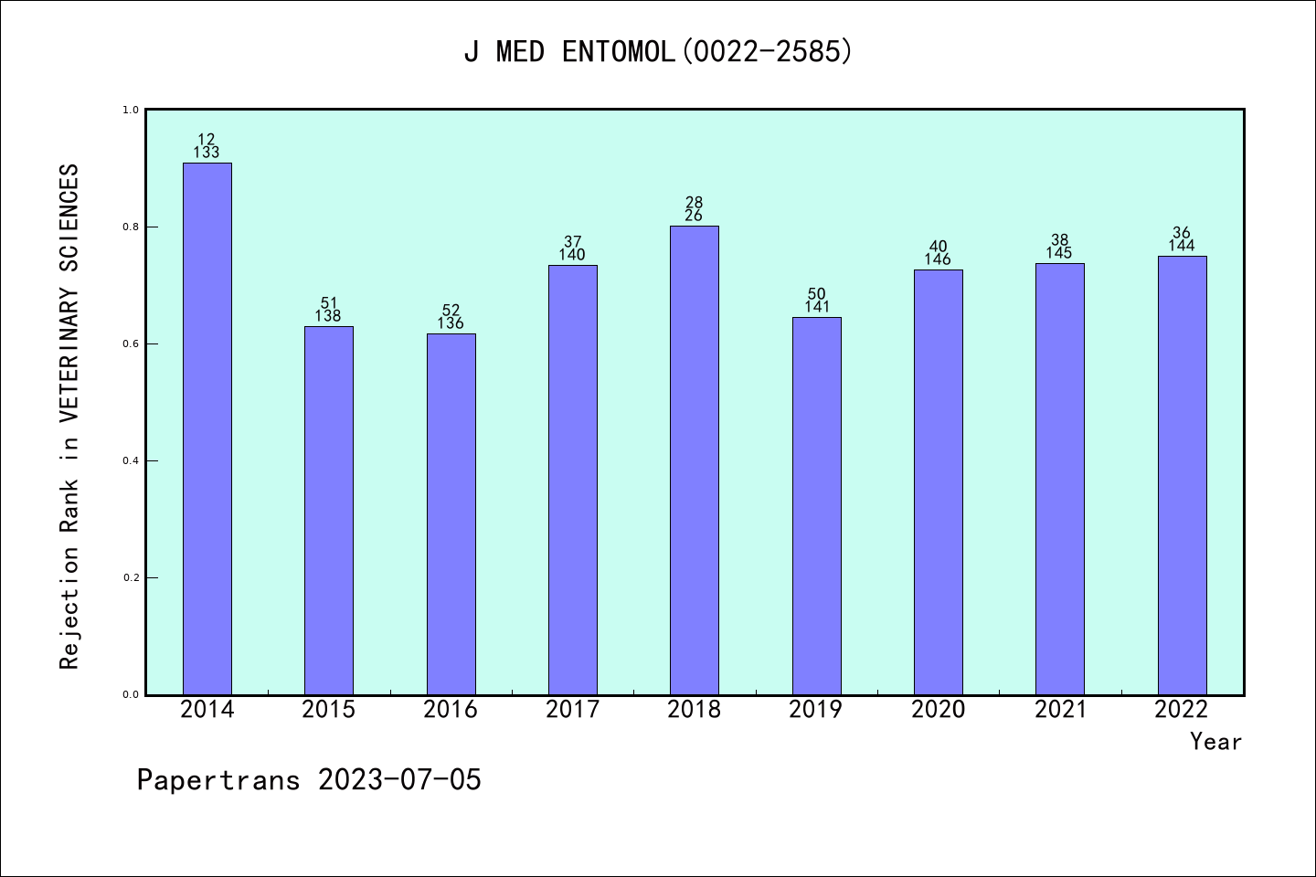 JOURNAL OF MEDICAL ENTOMOLOGY拒稿率学科排名@SCIE兽医学
