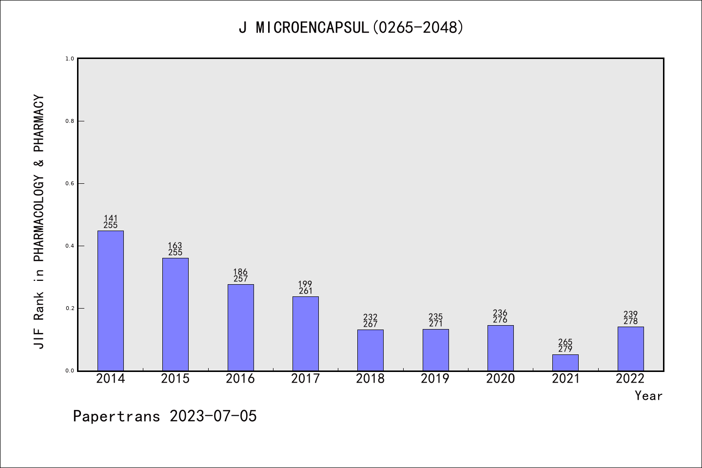 J MICROENCAPSUL图表质量排名@SCIE药理学