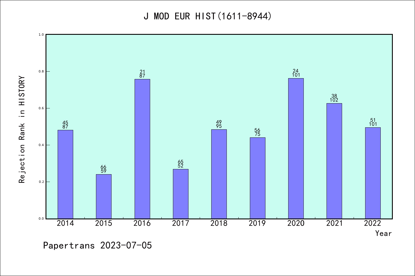 SSCI期刊Journal of Modern European History历年拒稿占比