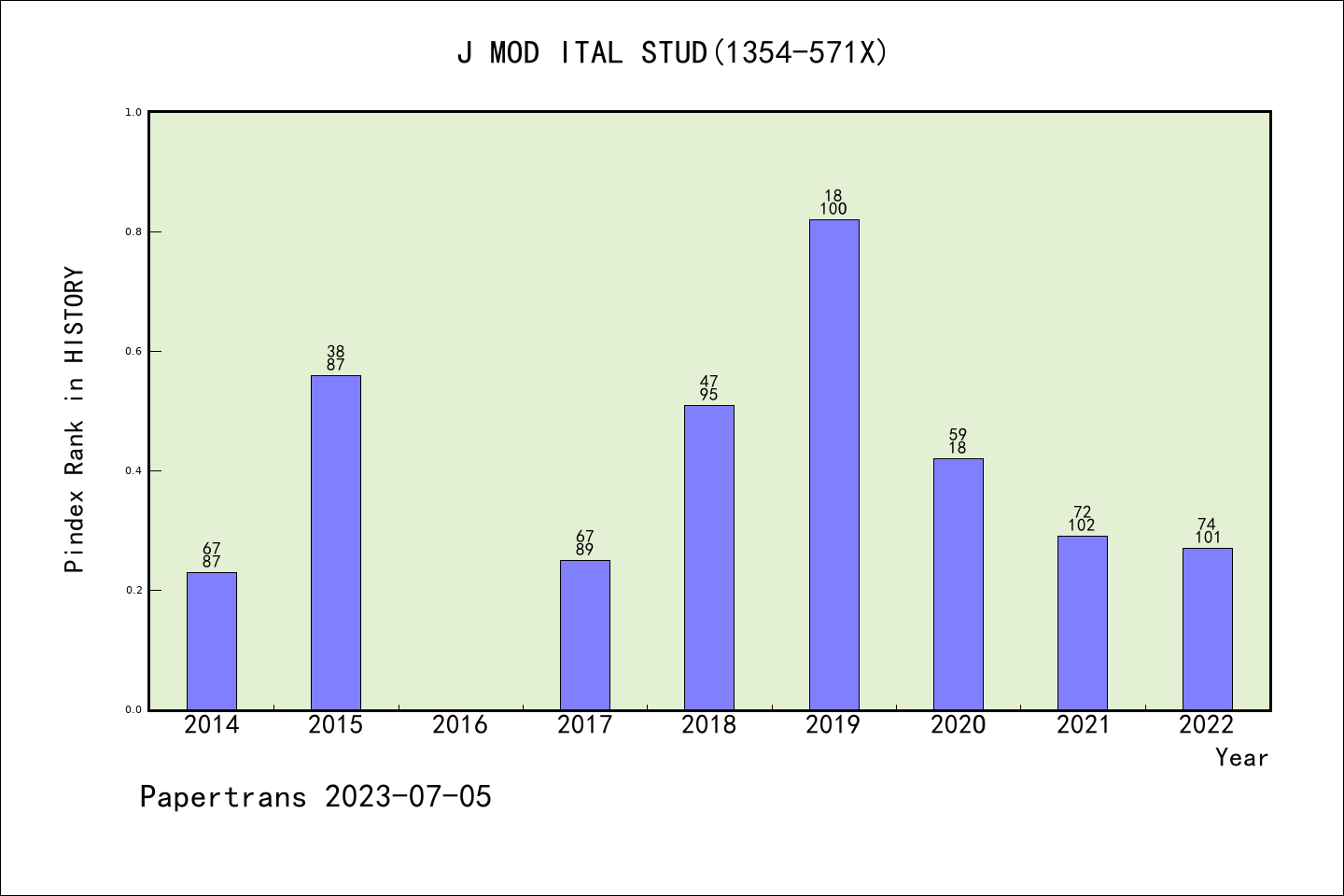 J MOD ITAL STUD图表质量排名@SSCI历史
