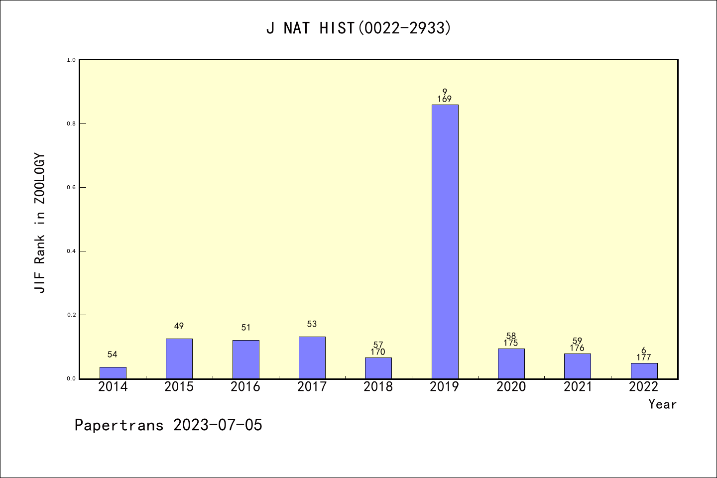 J NAT HIST图表质量排名@SCIE动物学