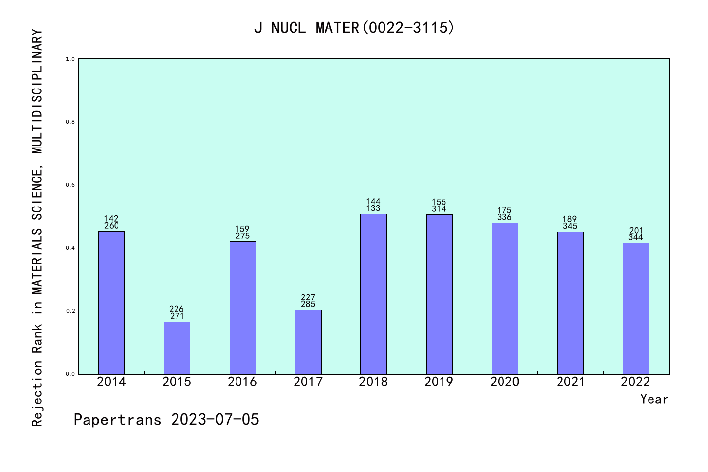 Journal of Nuclear Materials拒稿率学科排名@SCIE材料科学及交叉学科