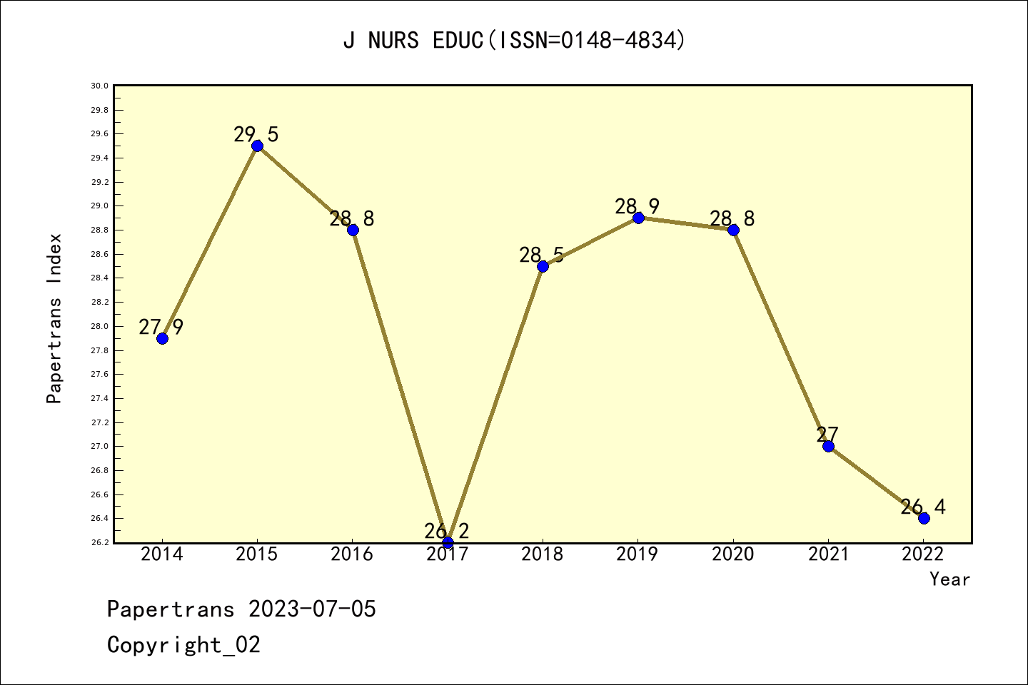 SCIE期刊JOURNAL OF NURSING EDUCATION历年派博系数(Pindex)