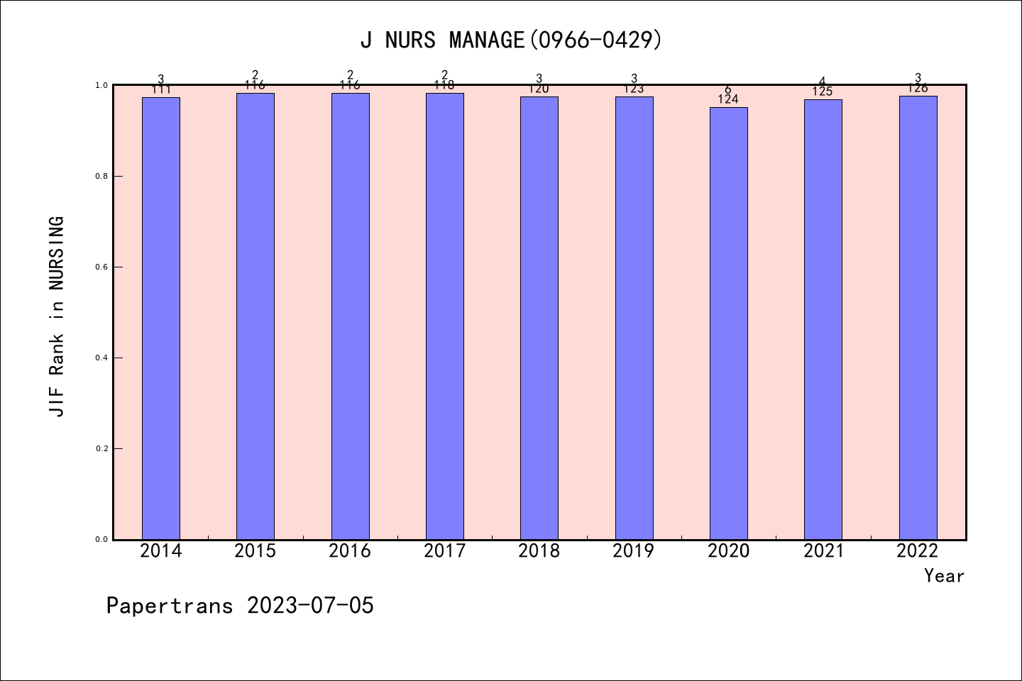 Journal of Nursing Management派博系数(Pindex)学科排名@SCIE护理