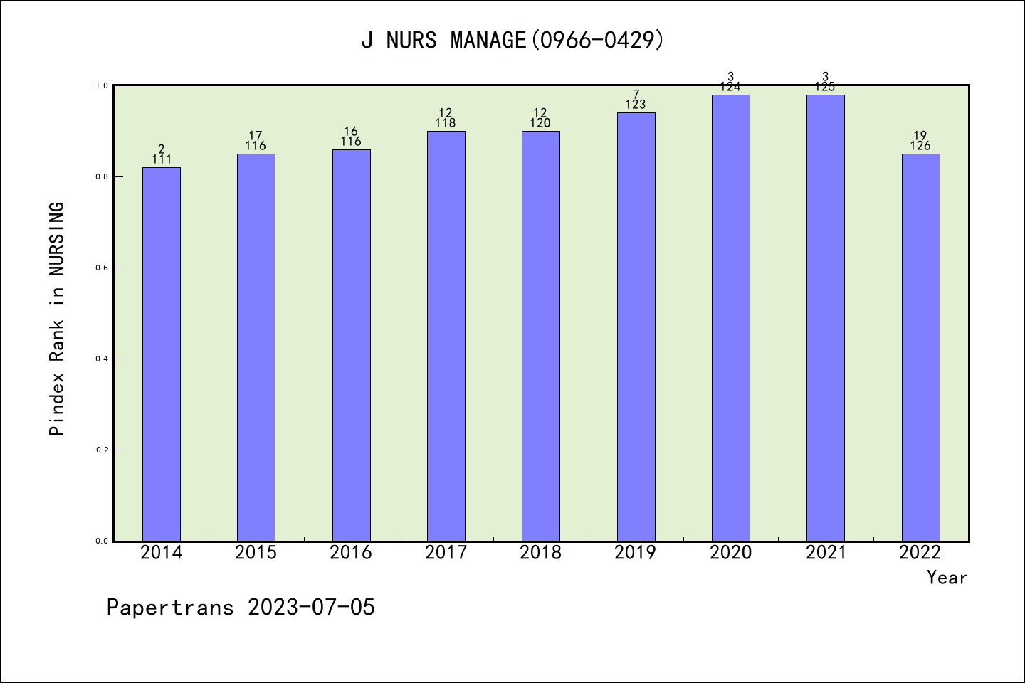 SCIE期刊Journal of Nursing Management历年派博系数(Pindex)