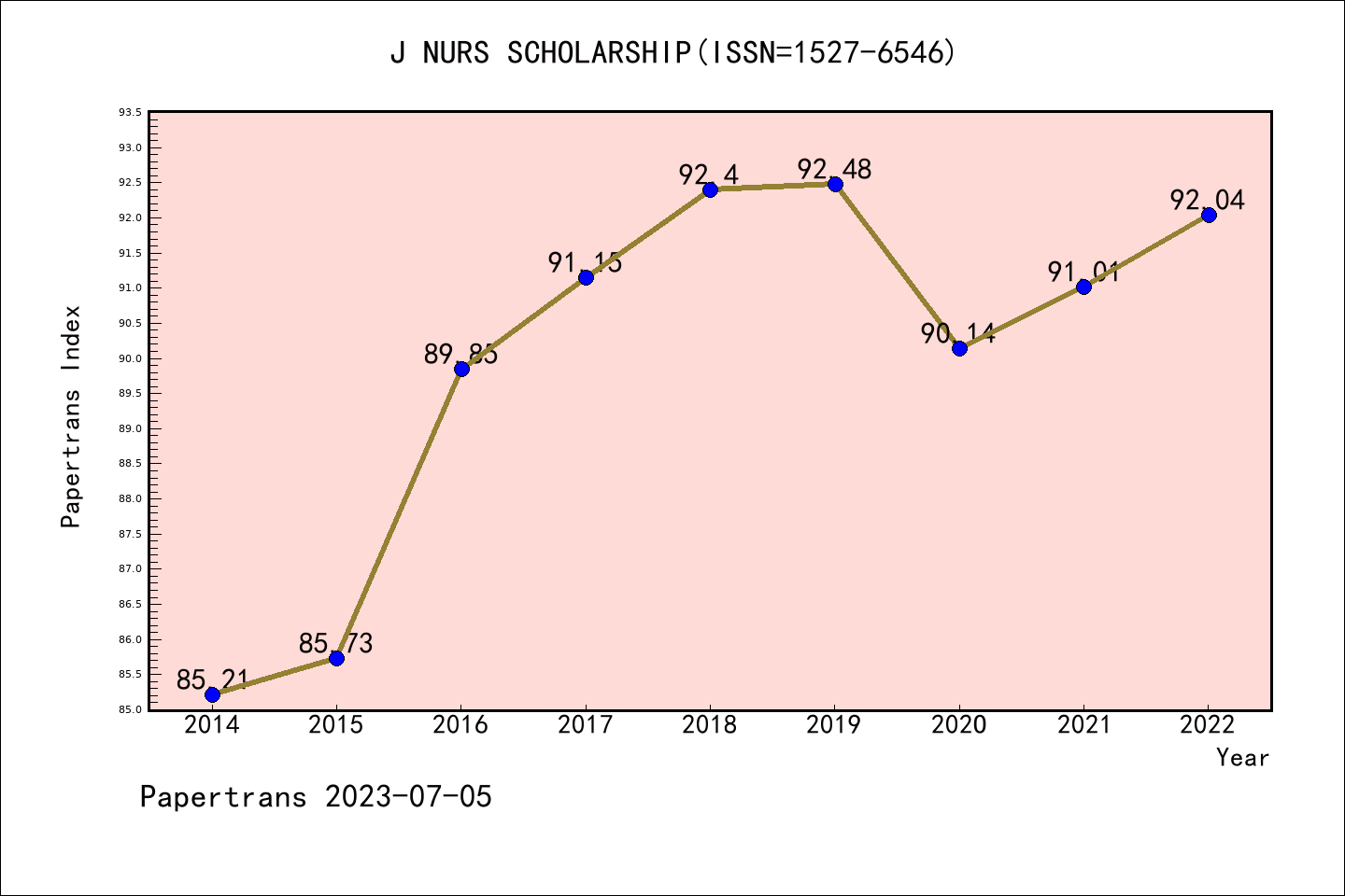 SCIE期刊JOURNAL OF NURSING SCHOLARSHIP历年派博系数(Pindex)