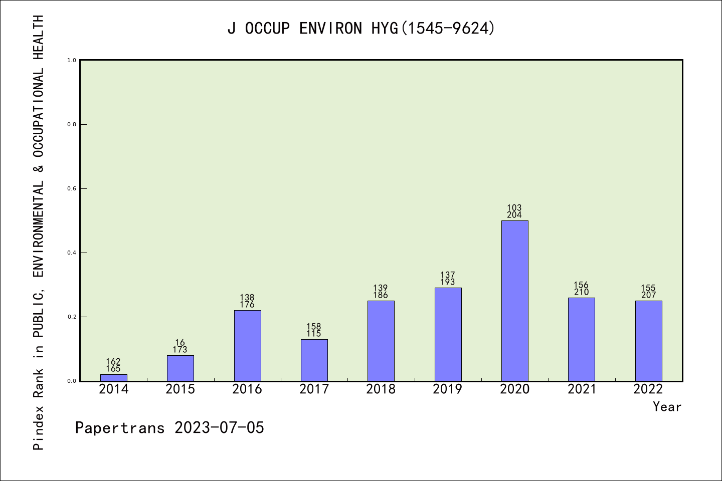 J OCCUP ENVIRON HYG图表质量排名@SCIE公共、环境和职业健康