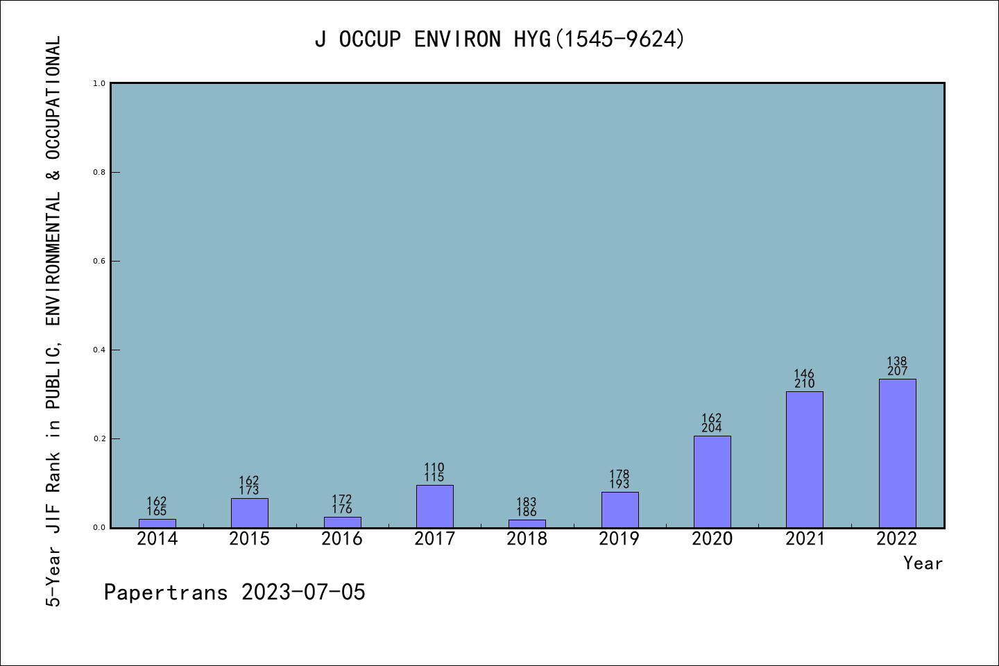 JOURNAL OF OCCUPATIONAL AND ENVIRONMENTAL HYGIENE拒稿率学科排名@SCIE公共环境和职业健康