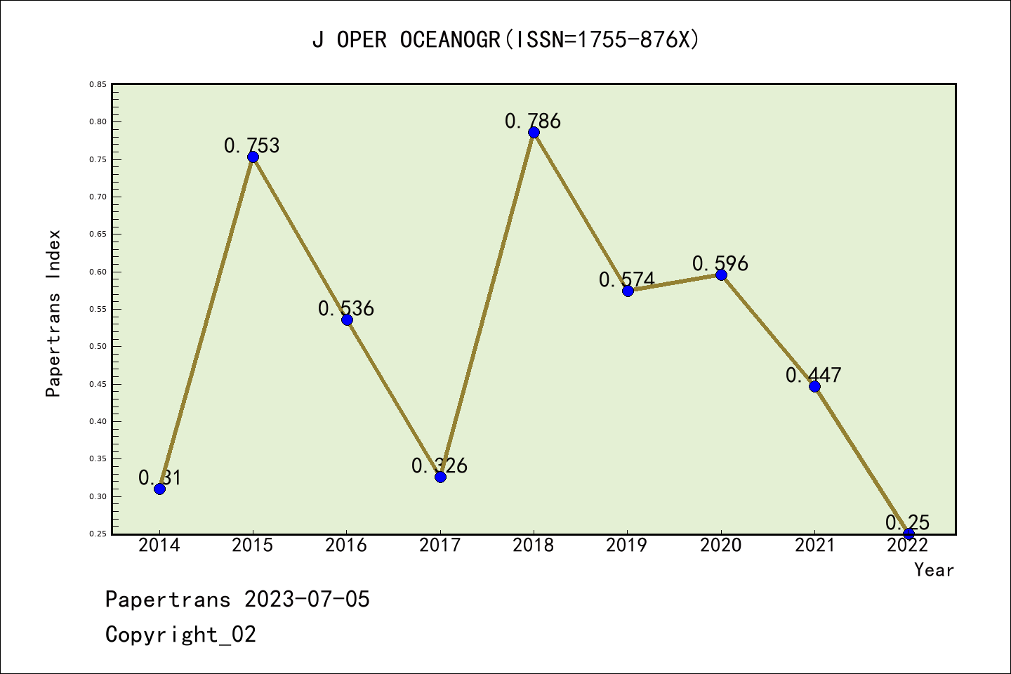 SCIE期刊Journal of Operational Oceanography历年派博系数(Pindex)