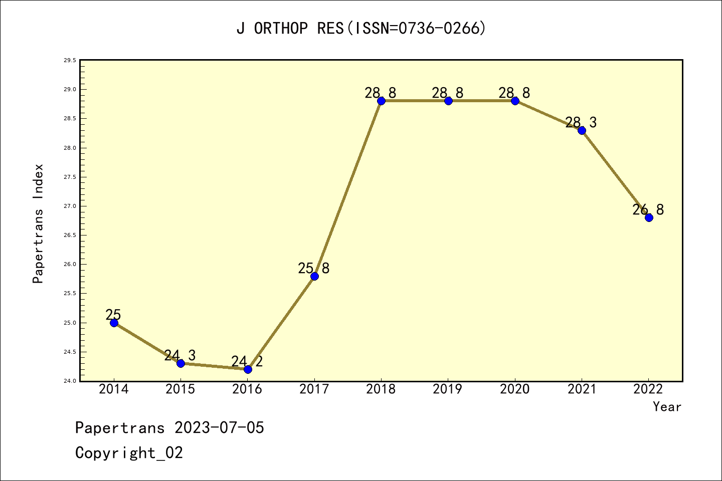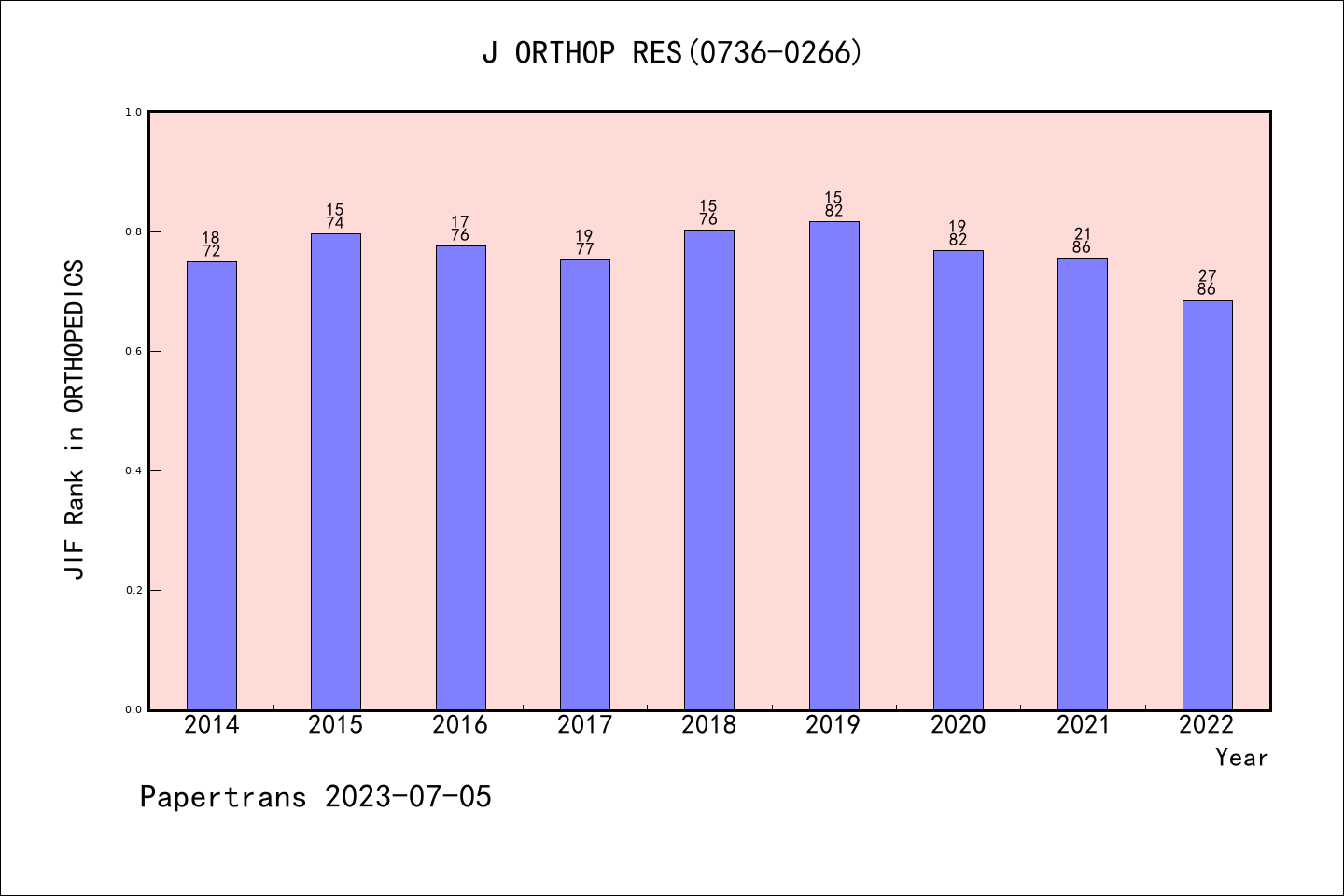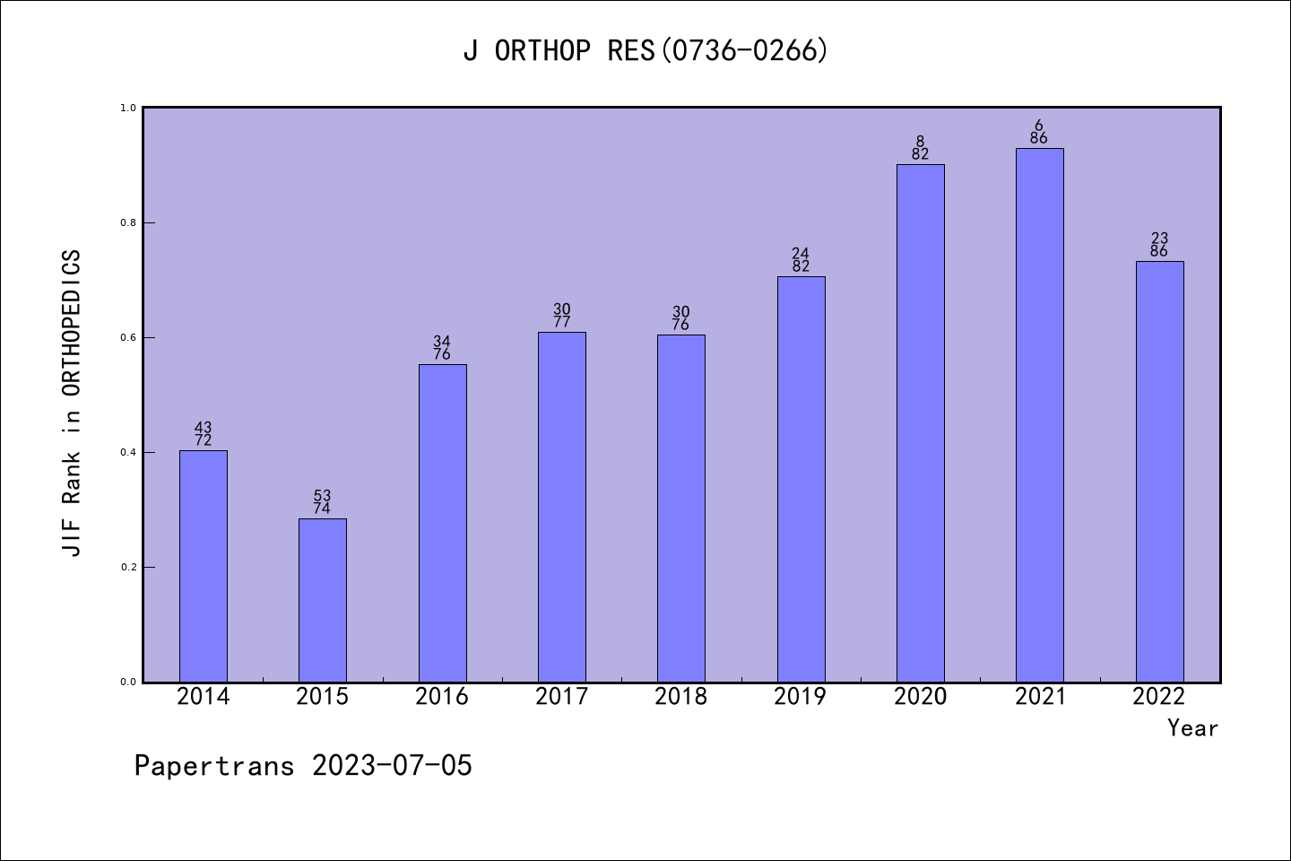 SCIE期刊JOURNAL OF ORTHOPAEDIC RESEARCH历年派博系数(Pindex)