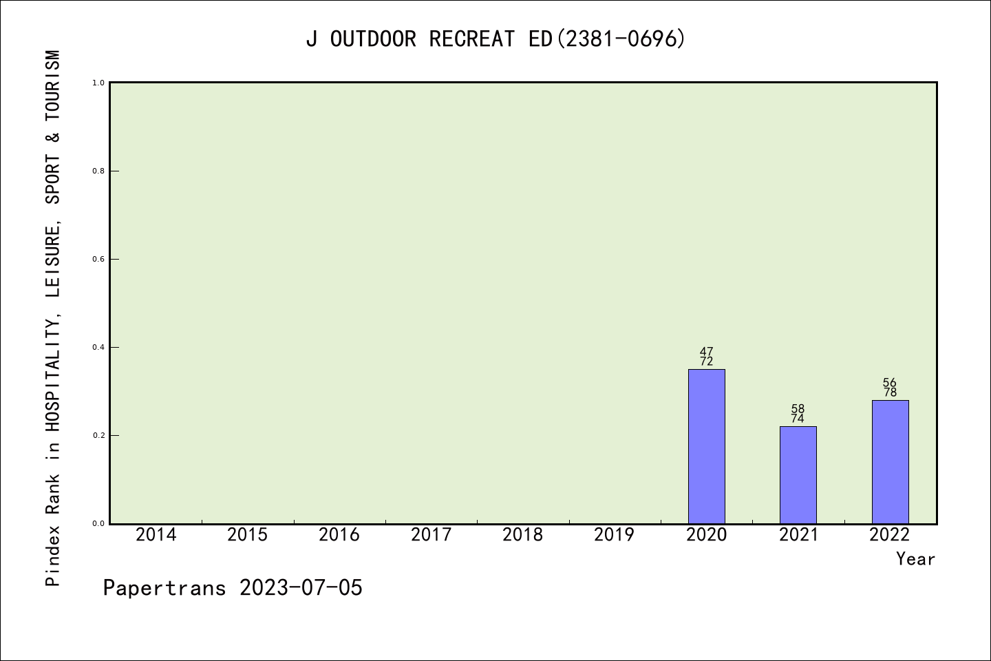 派博 系数 | ESCI期刊Journal of Outdoor Recreation Education and Leadership历年派博系数(Pindex)