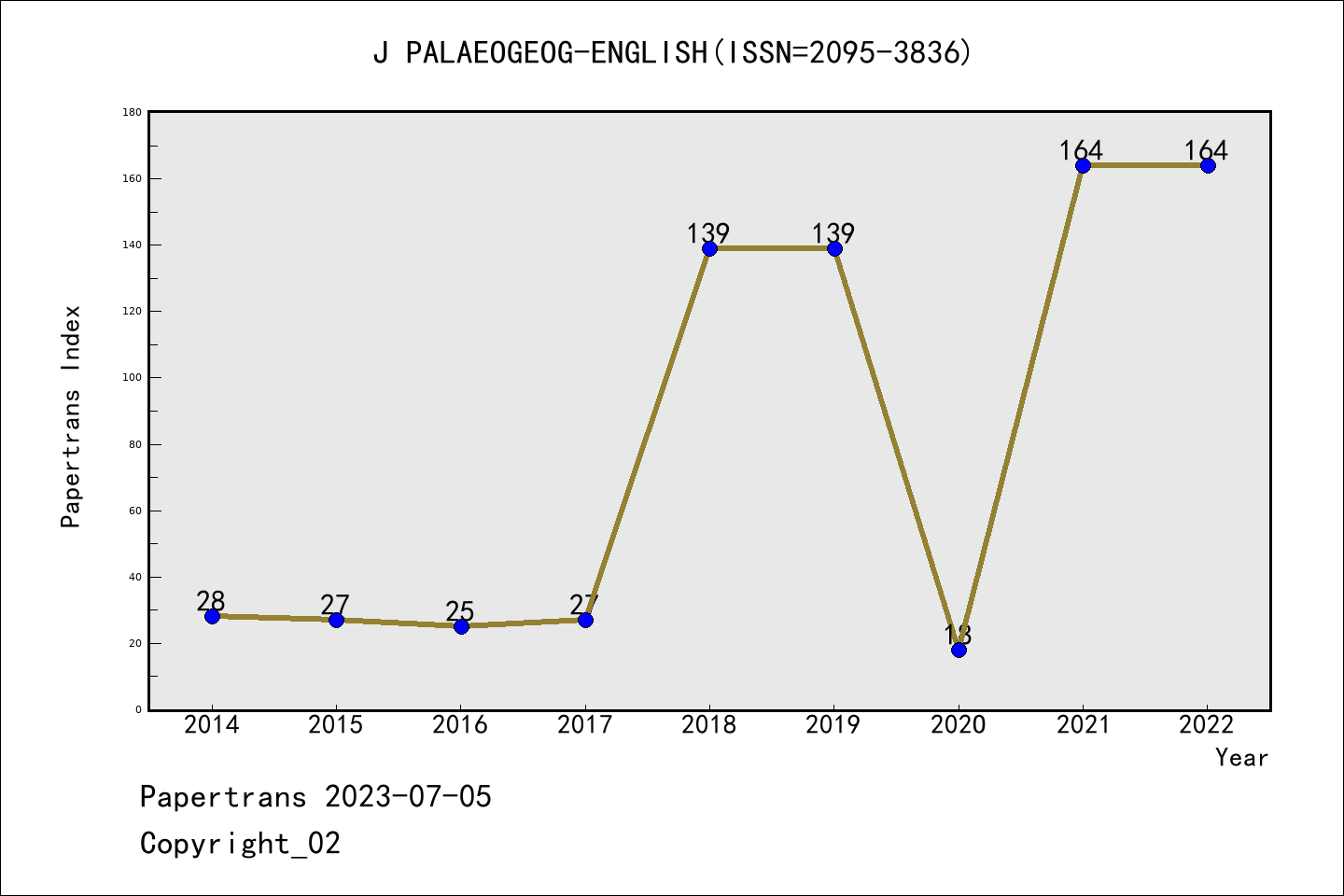 SCIE期刊Journal of Palaeogeography-English历年派博系数(Pindex)