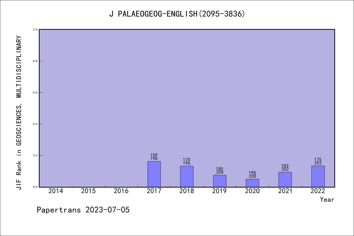 J PALAEOGEOG-ENGLISH图表质量排名@SCIE多学科地球科学