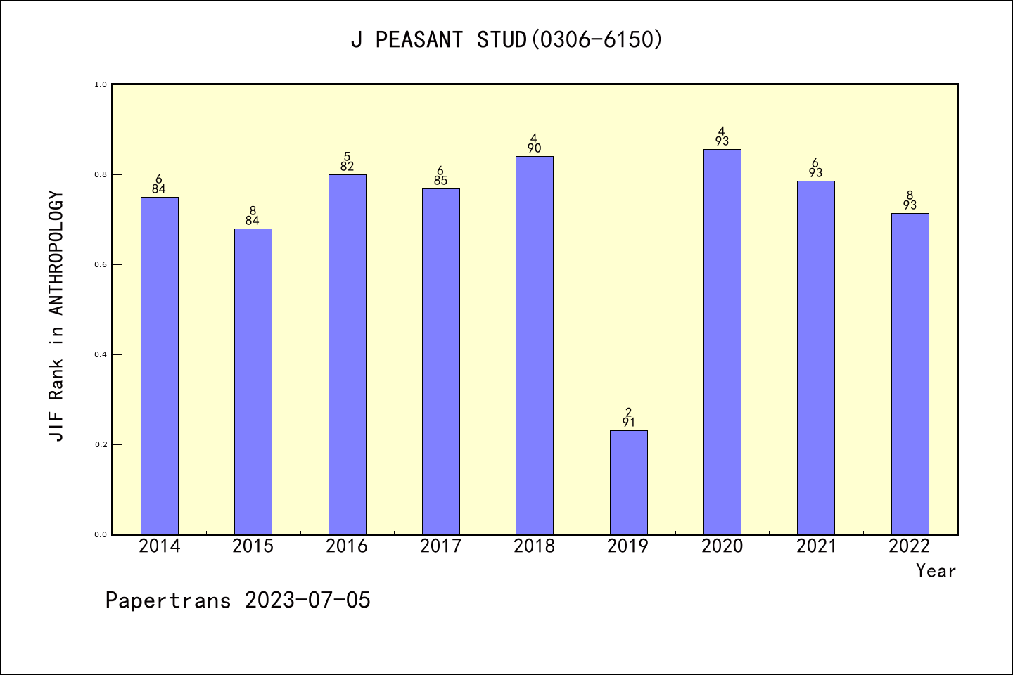 JOURNAL OF PEASANT STUDIES派博系数(Pindex)学科排名@SSCI人类学